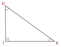 Şekildeki üçgende İ köşesindeki açı 90° dir, bu yüzden dik açılı üçgendir.