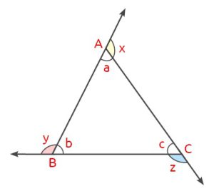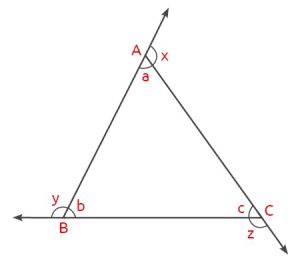 Şekildeki üçgende dış açılar toplamı x + y + z = 360° dir.