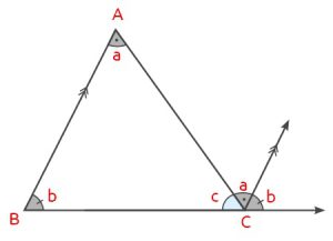 Şekildeki üçgende C köşesindeki dış açı diğer iki köşedeki a ve b açılarının toplamına eşittir.