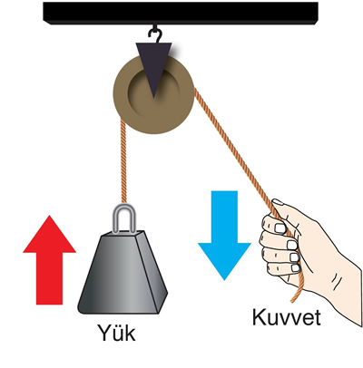 Ekseninden tavana veya duvara sabitlenerek sadece dönme hareketi yapan makaralardır. O noktasına göre tork hesaplandığında,