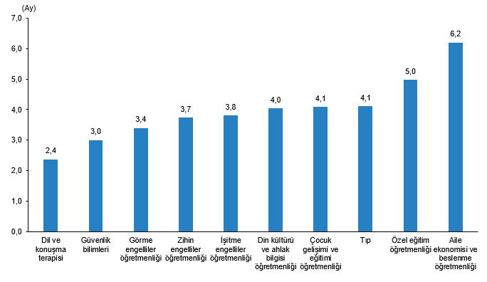 Lisans mezunlarının mezuniyetleri sonrası ilk iş bulma süre ortalamasının en kısa olduğu beş bölüm; dil ve konuşma terapisi (2,4 ay), güvenlik bilimleri (3,0 ay), görme engelliler öğretmenliği (3,4 ay), zihin engelliler öğretmenliği (3,7 ay) ve işitme engelliler öğretmenliği (3,8 ay) oldu.